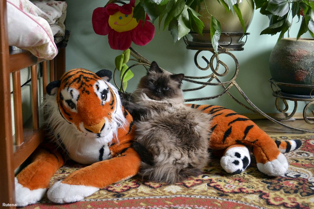 Коти все більше освоюються і звикають до нас і один до одного. Не можна сказати, щоб між ними була любов), але стосунки нормальні – можуть і потлумитись, і побавитись, гонять по квартирі, аж "пір*я" летить, думаю, що вже б сумували один за одним, якби розлучити...