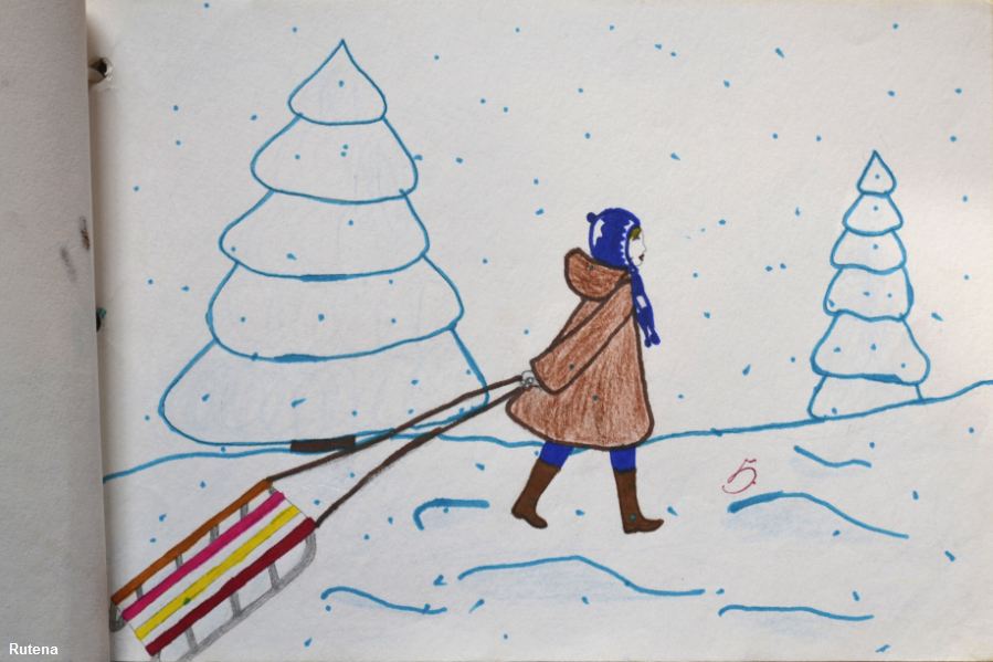 Зима Шкільний альбом: Автопортрет взимку Несе Галя воду