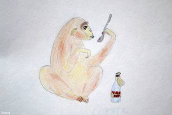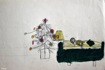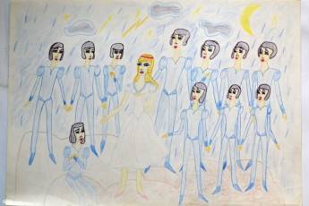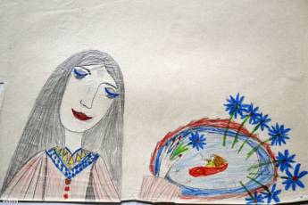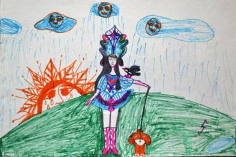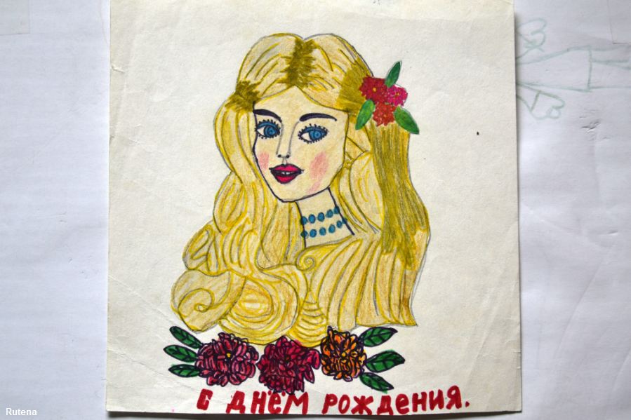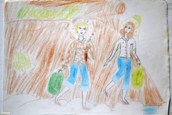 Якось улітку Рута зацікавилась моїми дитячими малюнками... Довелося тягти з самого глухого кутка шафи старий чумуйдан. Потім той чемодан ще пару тижнів жив у неї в кімнаті, деякі мої малюнки так і залишились у Рути, для доопрацювання. ) А ще з'явилися Рутині малюнки-наслідування, взагалі вона мене похвалила. ))