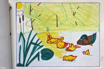 Шкільний альбом: Каченята з мамою Ілюстрація до казки про зайчика та їжачка Похід у гори