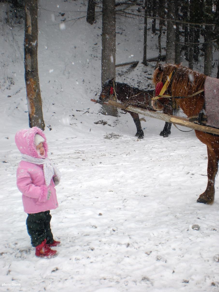 Погодка була весняна, мінлива. Зустріло і провело нас сонечко, а між тим були снігопади і навіть хуртовини. Діток вивезти на гору не вдалося. Але на конику покатались, і на санчатах. Та в основному сиділи в хаті - добре, хоч була компанія і комфорт. І мультики ).