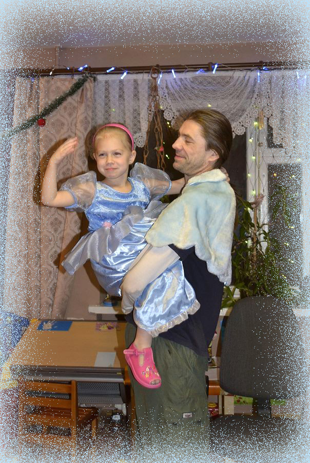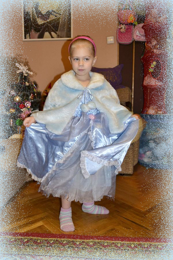 Мама витягла із закромів маскарадну сукню, троха завелику, але то нам не завадило, ще пару-трійку аксесуарів - і Рута перетворилась у міні-Попелюшку ). Тато виступив у ролі принца. Була розіграна сценка з балом, загубленою туфлею і т.д. (Були і нововведення - як от телефонна розмова з принцем :)). Після чого переглянуто віповідний кавалок Диснеївського мультфільму про Попелюшку...